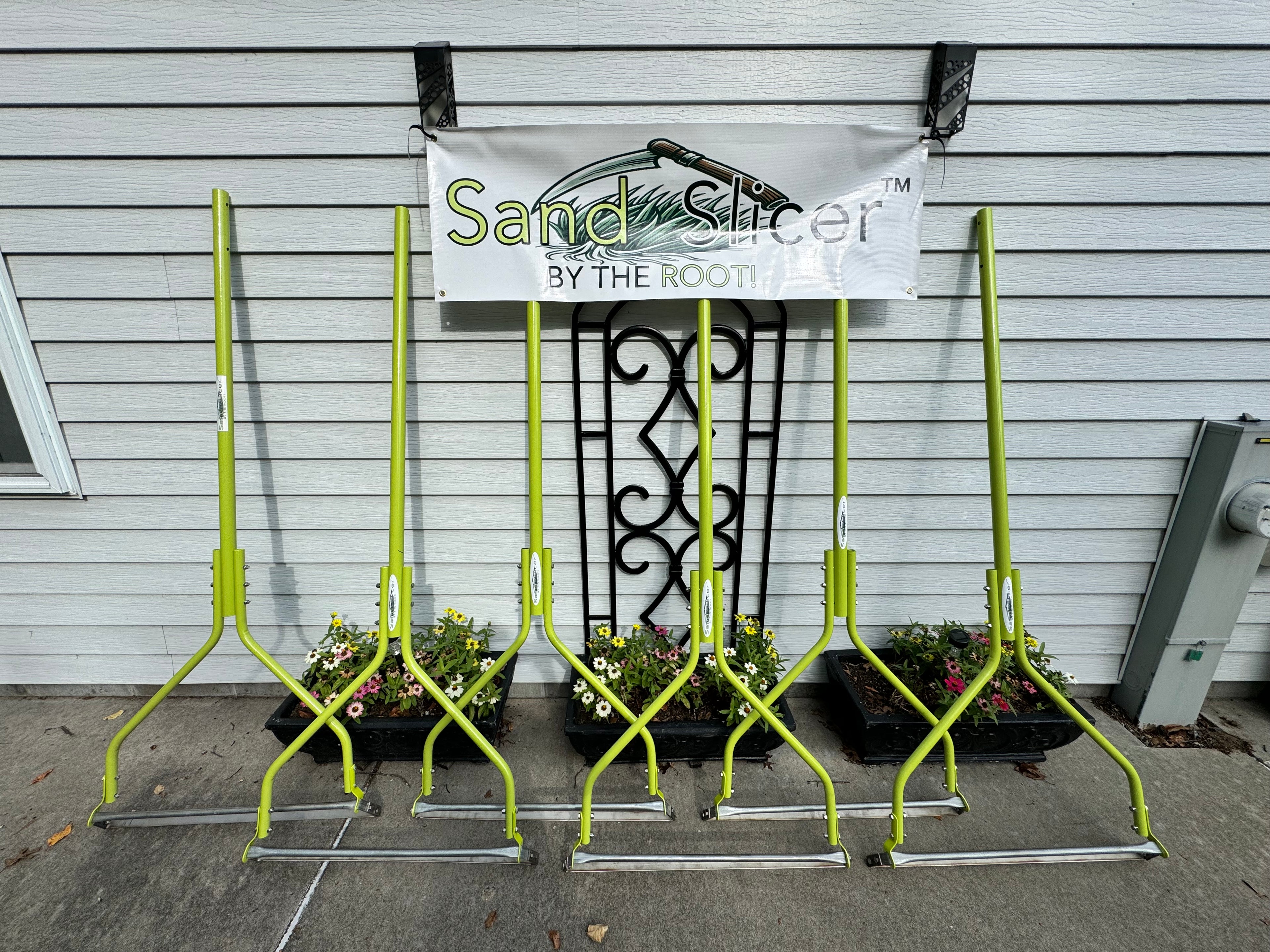The Sand Slicer™ is an innovative tool designed to improve lake shorelines by effectively removing underwater weeds at their roots, providing a smooth, firm sandy texture. Weighing about 10 pounds, it offers a non-chemical solution to managing invasive species and maintaining pristine lake environments. The Sand Slicer stands out by targeting weeds more thoroughly than surface-level alternatives, making it a unique and effective choice for lakefront property owners.